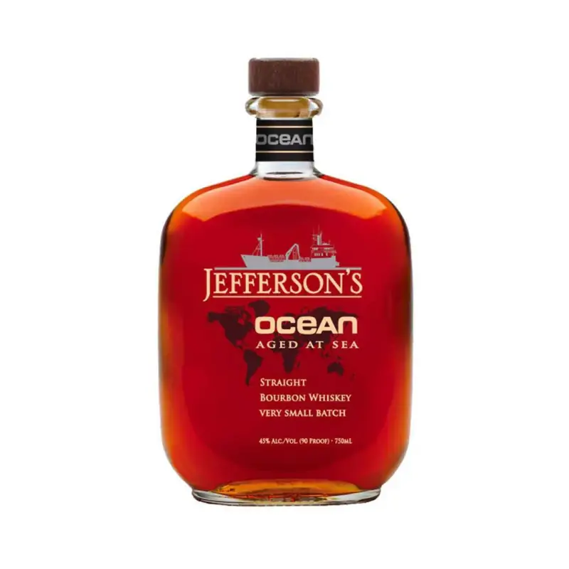 Jefferson's Ocean Aged At Sea Bourbon is an exceptional spirit that elevates the bourbon experience to new heights. This unique whiskey is crafted using a careful selection of corn, rye, and malted barley, which are distilled to perfection and then aged in custom barrels aboard a ship. The innovative aging process involves a journey across the world's oceans, allowing the bourbon to interact with salt air and the gentle movement of the waves, resulting in a complex flavor profile that is distinctly unique.